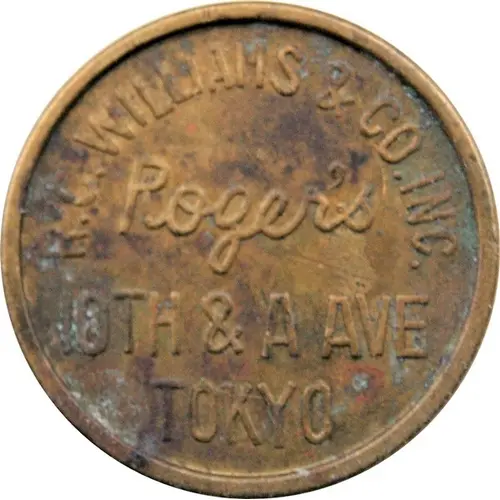 | Obverse lettering | R.C. WILLIAMS & CO. INC. Roger`s 10TH & A AVE TOKYO |