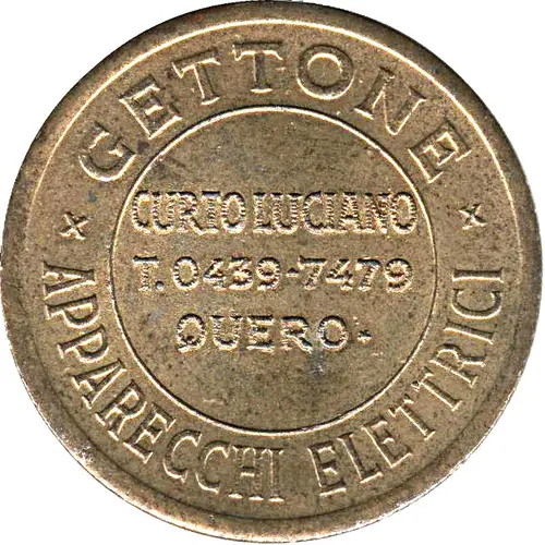 | Obverse lettering | x GETTONE x CURTO LUCIANO T. 0439-7479 QUERO APPARECCHI ELETTRICI |