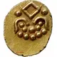 | Obverse description | Crescent with diamond, flanked by two beads above and two curved lines and ten pellets below. The curved lines and pellets are a depiction of `Vishnupaadam` (feet of Lord Vishnu, a God in Hinduism). |