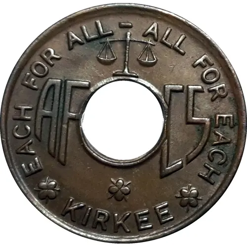 Obverse lettering KIRKEE EACH FOR ALL - ALL FOR EACH AF CS (Ammunition Factory Canteen Service)