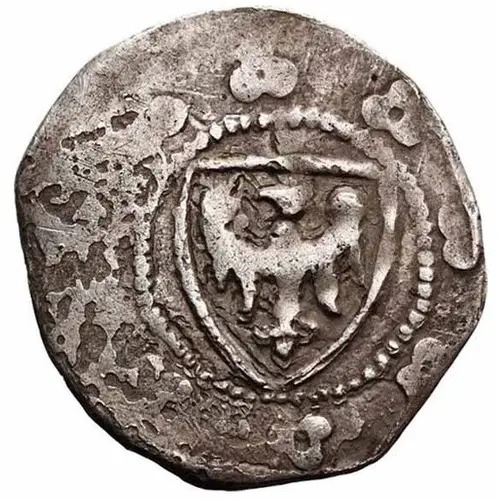 Obverse description Shield of arms with Silesian eagle within reeded circle, border of rosettes surrounding.