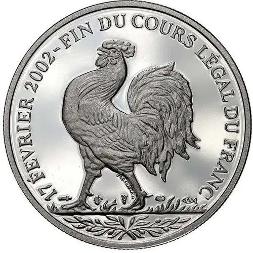 | Obverse lettering | 17 FÉVRIER 2002 - FIN DU COURS LÉGAL DU FRANC d’ap. CHAPLAIN |