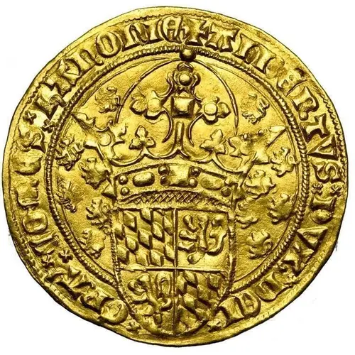 | Obverse description | Crowned shield with quartered arms of Bavaria-Hainaut. Twelve small lions in the field |