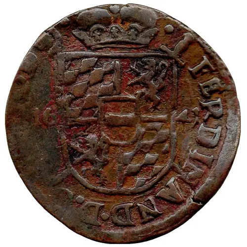 | Opis rewersu | With a bonnet crowned letters F*B (Ferdinand Bavaria) separated by the perron of Liège and rosette. |