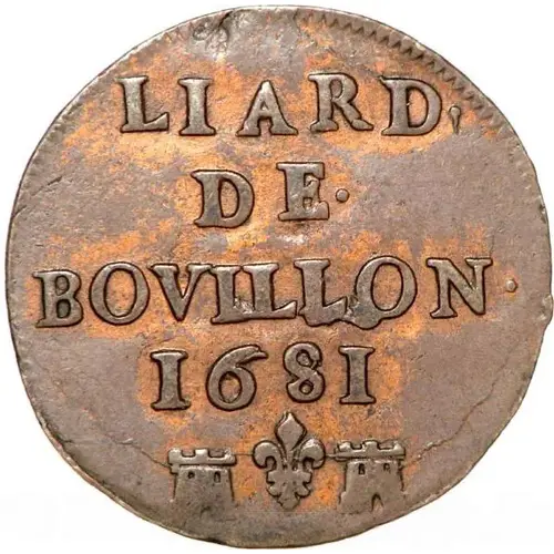 | Leyenda del reverso | LIARD. DE. BOVILLON. 1681 (Translation: Liard of Bouillon.) |