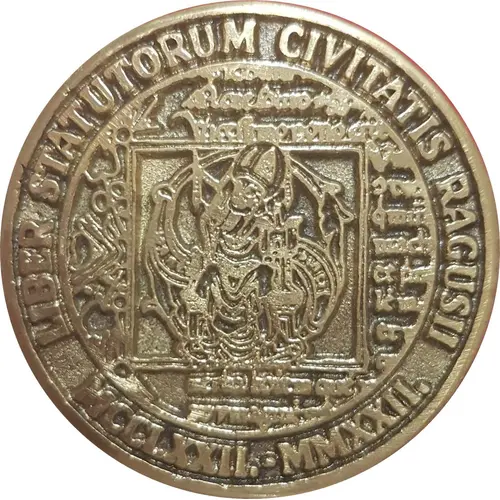 Obverse lettering LIBER STATUTORUM CIVITATIS RAGUSII MCCLXXII.-MMXXII.