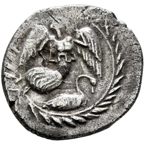 | Obverse description | Nike flying right; to lower right, swan standing right; all within wreath. |