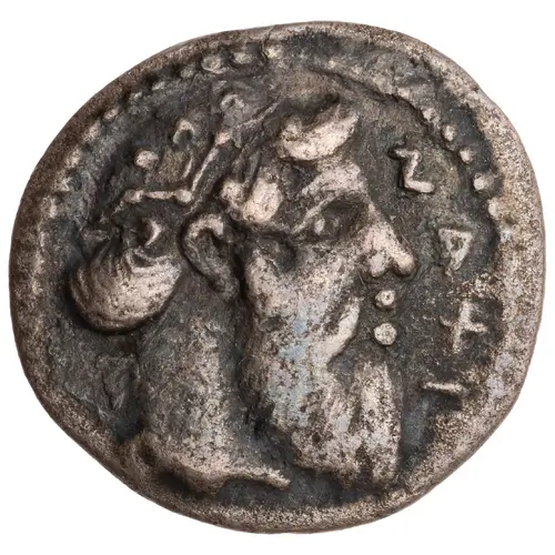 | Obverse description | Bearded head of Dionysos to right, wearing diadem adorned with ivy leaves. |