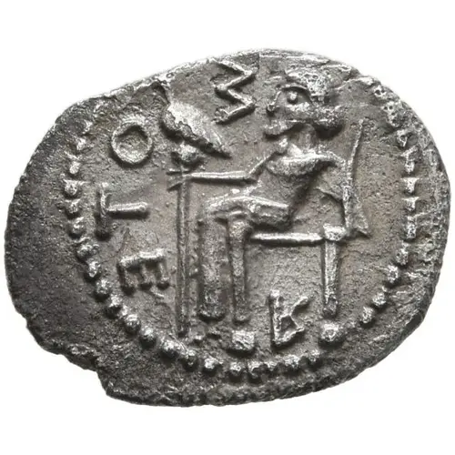 | توضیحات روی سکه | Zeus seated left on low throne, holding scepter surmounted by an eagle in his right hand. |