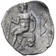 | Reverse description | Herakles, seated left on a rock draped with a lion`s skin, with a club in his right hand and his left resting on the rock; behind to right, bow |