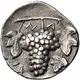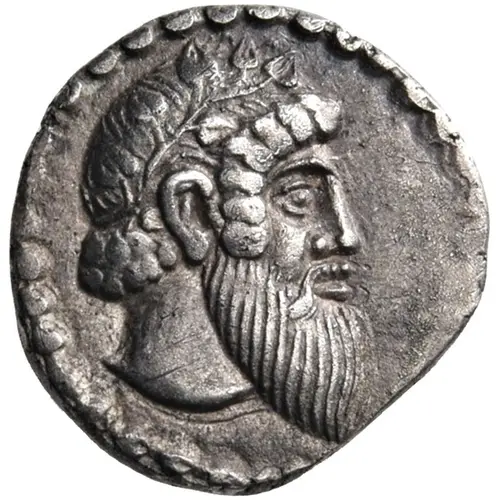 | Obverse description | Head of bearded Dionysos to right, wearing ivy wreath. |