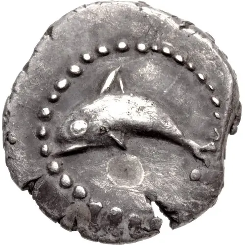 | Obverse description | Dolphin left. |