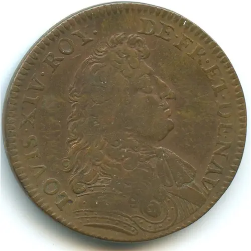 | Obverse lettering | LOVIS . XIV . ROY DE . FR. ET NAV. |