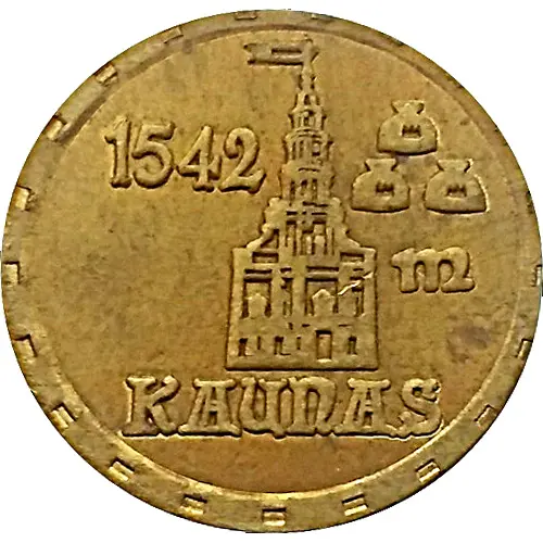 Obverse description Town Hall of Kaunas The construction of Kaunas town hall started in 1542