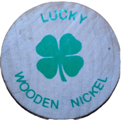| Obverse lettering | LUCKY WOODEN NICKEL |
