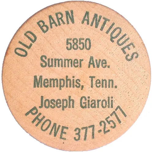 | Obverse lettering | OLD BARN ANTIQUES 5850 Summer Ave. Memphis, Tenn. Joseph Giaroli PHONE 377-2577 |