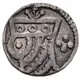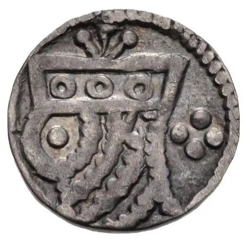 توضیحات پشت سکه In a pearl circle, a long double anchor cross with a dot at center.