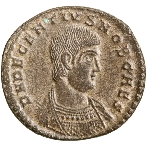 Obverse description Bust of Decentius, bare-headed, cuirassed, right.