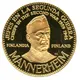 Mannerheim facing right, text in Spanish and English: name of the series above, person name below, country on sides |