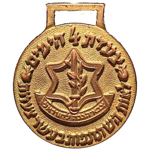 | Obverse lettering | צעדת 4 הימים צבא הגנה לישראל לאות השתתפות בעשר צעוות (Translation: The 4 Day Walk The Israel Defense Forces A sign of participation in ten shaves) |