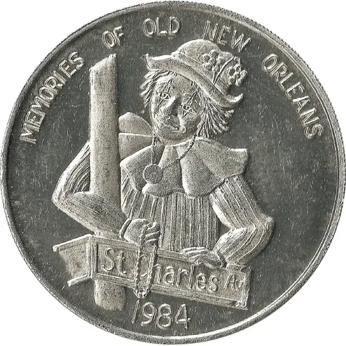 Obverse lettering MEMORIES OF OLD NEW ORLEANS St. Charles Av 1984