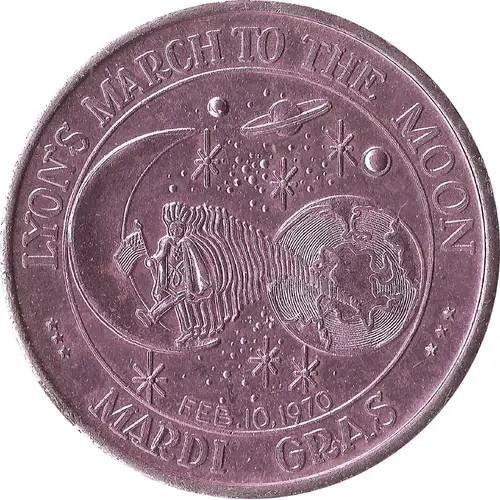 | Obverse lettering | *** LYON`S MARCH TO THE MOON *** FEB.10.1970 MARDI GRAS |