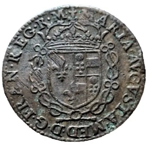 | Obverse description | Crowned shield, half party of France and quartered to the 1 and 4 of Medici, to the 2 and 3 of Austria, surrounded of a cordelière. Titulature around. |