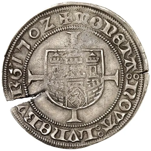 表面の説明 City arms (gate) superimposed on cross in circle.