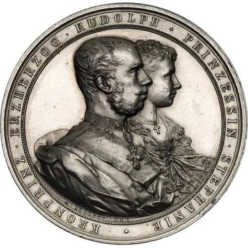 | Obverse lettering | KRONPRINZ ERZHERZOG RUDOLPH PRINZESSIN STEPHANIE A SCHARFF FEC |