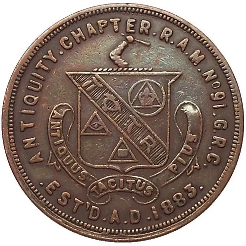 | Obverse lettering | ANTIQUITY . CHAPTER . R.A.M. No.91 . G.R.C. ANTIQUUS TACITUS PIUS . EST`D . A.D. 1883 . |