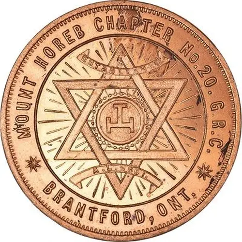 | Obverse lettering | MOUNT HOREB CHAPTER No. 20. G.R.C. ESTABLISHED A. L. 5861. BRANTFORD, ONT. |