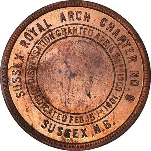| Obverse lettering | SUSSEX ROYAL ARCH CHAPTER NO . 9 DISPENSATION GRANTED APRIL 20th 1900 DEDICATED FEB. 15th 1901 SUSSEX, N. B. |