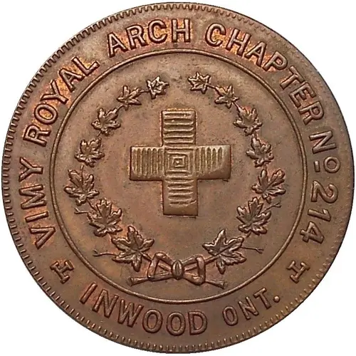 | Legenda del dritto | VIMY ROYAL ARCH CHAPTER Nᐤ 214 INWOOD ONT. |