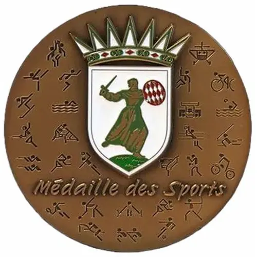 | Obverse description | The Town Hall`s coat of arms, in color and in relief, surrounded by a large number of sports. |
