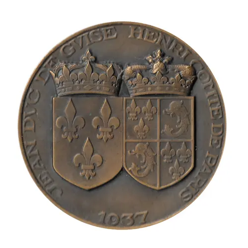 | Obverse lettering | JEAN DVC DE GVISE - HENRI COMTE DE PARIS 1937 |