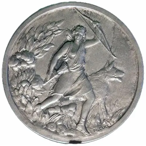 Obverse description Diane hunting with a dog in the wild.