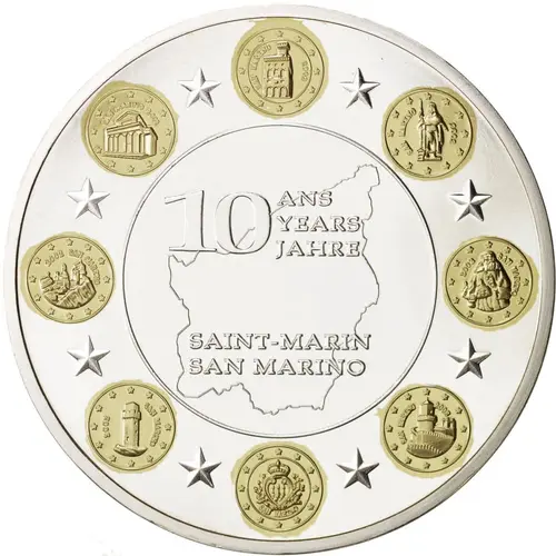 | Obverse lettering | 10 ANS YEARS JAHRE SAINT-MARIN SAN MARINO |