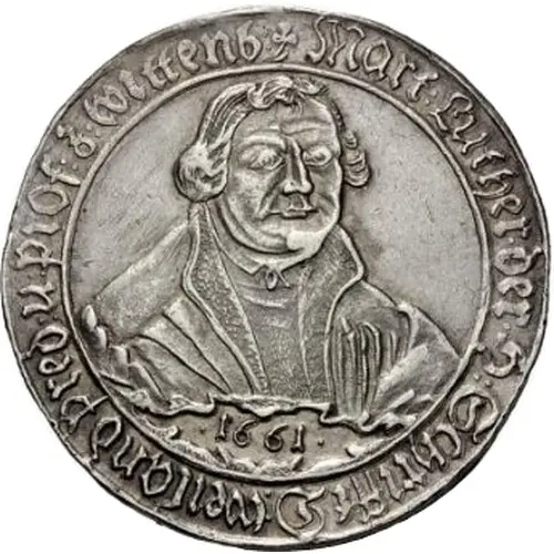 | Obverse lettering | Mart • Luther • der • H Schrifft D: Weiland Pred • u: Prof: Z: Wittenb. |