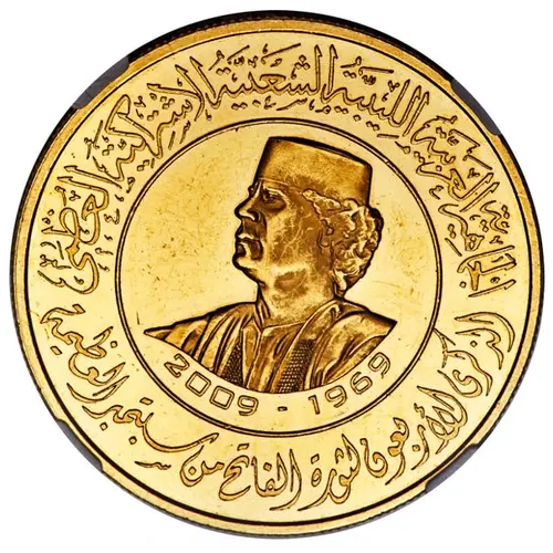 | Obverse description | Bust of Moammar Gaddafi facing left |
