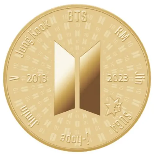| Obverse lettering | BTS 2013 2023 RM, Jin, SUGA, j-hope, Jimin, V and Jung Kook |