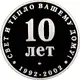 | Reverse lettering | СВЕТ И ТЕПЛО ВАШЕМУ ДОМУ 10 ЛЕТ ММД 1992-2002 (Translation: LIGHT AND WARMTH FOR YOUR HOME 10 YEARS MMD 1992-2002) |