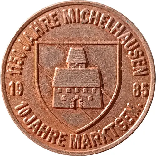 | Legenda do anverso | 1150 JAHRE MICHELHAUSEN 1985 10 JAHRE MARKTGEM. |