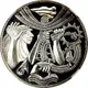 | Reverse description | Bust of a person raising hand on the left; hand holding a power transmission tower in the middle; hand writing at the bottom; hand holding a circular symbol on the right. |