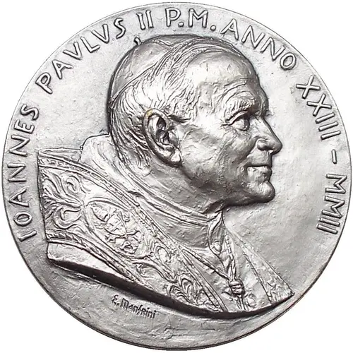 | Obverse lettering | IOANNES PAVLUS II P.M. ANNO XXIII - MMII E. Manfrini |
