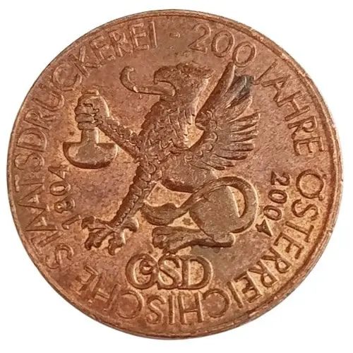 | Obverse lettering | 200 JAHRE ÖSTERREICHISCHE STAATSDRUCKEREI - 1804 ÖSD 2004 |