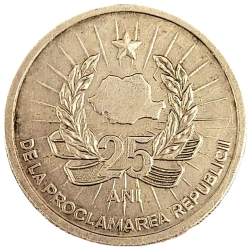| Chữ khắc mặt trước | 25 ani de la proclamarea republicii (Translation: 25 years since the proclamation of the republic) |