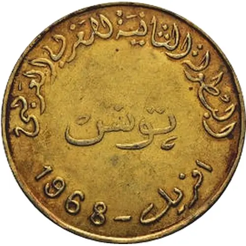 | Obverse lettering | البطولة الثانية للمغرب العربى تونس افريل - 1968 (Translation: 2nd Tournament of Maghreb Countries Tunis ِApril - 1968) |