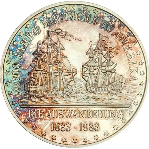 | Obverse lettering | 300 JAHRE DEUTSCHE IN AMERIKA DIE AUSWANDERUNG // 1683 - 1983 |