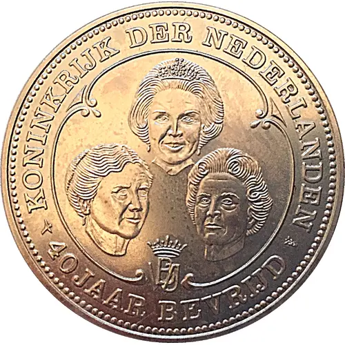 | Obverse lettering | KONINKRIJK DER NEDERLANDEN 40 JAAR BEVRIJD |
