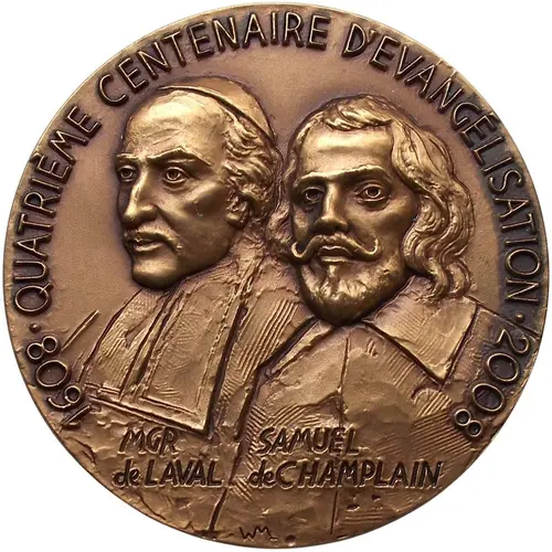 | Legenda del dritto | 1608 QUATRIÈME CENTENAIRE D`ÉVANGÉLISATION 2008 MGR de LAVAL SAMUEL de CHAMPLAIN WM |